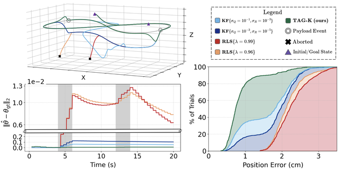 Accurate online inertial parameter estimation is essential for adaptive robotic control, enabling real-time adjustment to payload changes, environmental interactions, and system wear. Traditional methods such as Recursive Least Squares (RLS) and the Kalman Filter (KF) often struggle to track abrupt parameter shifts or incur high computational costs, limiting their effectiveness in dynamic environments and for computationally constrained robotic systems. As such, we introduce TAG-K, a lightweight extension of the Kaczmarz method that combines greedy randomized row selection for rapid convergence with tail averaging for robustness under noise and inconsistency. This design enables fast, stable parameter adaptation while retaining the low per-iteration complexity inherent to the Kaczmarz framework. We evaluate TAG-K in synthetic benchmarks and quadrotor tracking tasks against RLS, KF, and other Kaczmarz variants. TAG-K achieves 1.5x-1.9x faster solve times on laptop-class CPUs and 4.8x-20.7x faster solve times on embedded microcontrollers. More importantly, these speedups are paired with improved resilience to measurement noise and a 25% reduction in estimation error, leading to nearly 2x better end-to-end tracking performance.