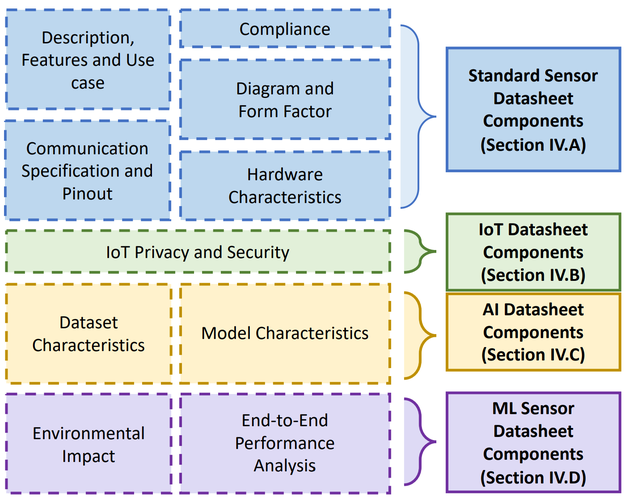 Machine learning (ML) is becoming prevalent in embedded AI sensing systems. These ‘ML sensors’ enable context-sensitive, real-time data collection and decision-making across diverse applications ranging from anomaly detection in industrial settings to wildlife tracking for conservation efforts. As such, there is a need to provide transparency in the operation of such ML-enabled sensing systems through comprehensive documentation. This is needed to enable their reproducibility, to address new compliance and auditing regimes mandated in regulation and industry-specific policy, and to verify and validate the responsible nature of their operation. To address this gap, we introduce the datasheet for ML sensors framework. We provide a comprehensive template, collaboratively developed in academia-industry partnerships, that captures the distinct attributes of ML sensors, including hardware specifications, ML model and dataset characteristics, end-to-end performance metrics, and environmental impacts. Our framework addresses the continuous streaming nature of sensor data, real-time processing requirements, and embeds benchmarking methodologies that reflect real-world deployment conditions, ensuring practical viability. Aligned with the FAIR principles (Findability, Accessibility, Interoperability, and Reusability), our approach enhances the transparency and reusability of ML sensor documentation across academic, industrial, and regulatory domains. To show the application of our approach, we present two datasheets: the first for an open-source ML sensor designed in-house and the second for a commercial ML sensor developed by industry collaborators, both performing computer vision-based person detection.